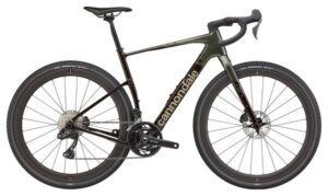 Le Cannondale Topstone Carbon 2 L est un gravel haut de gamme avec transmission Shimano GRX 11V, roues 700 mm et cadre carbone performant en vert.