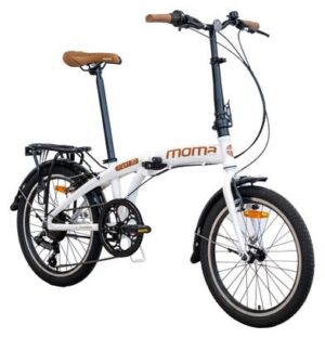 Le Moma Bikes E-20.2 est un vélo pliant électrique urbain, équipé d’une transmission Shimano 7 vitesses, d’un moteur puissant et d’une batterie amovible. Format compact, design noir moderne.