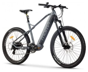 Le Moma Bikes E-MTB est un VTT électrique semi-rigide simple et efficace avec Shimano Altus 8V, roues 27.5’’ et cadre gris.