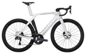Vélo de route haut de gamme alliant performance aérodynamique, légèreté et transmission électronique Sram Red AXS 12 vitesses.