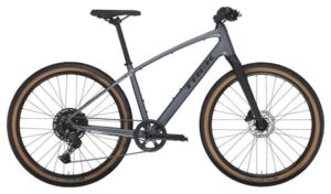 Trek Dual Sport 3 Gén 5, vélo fitness polyvalent avec Shimano CUES 10V et roues 27.5’’, cadre gris.