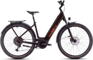 VTC Électrique Cube Touring Hybrid Pro 625 Easy Entry Shimano Cues 11V 625 Wh 700 mm Marron Orange Cinnamon 2025