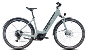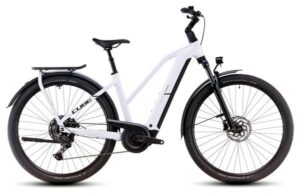 VTC Électrique Cube Touring Hybrid One 625 Easy Entry Shimano Cues 9V 625 Wh 700 mm Blanc Cotton Gris 2025