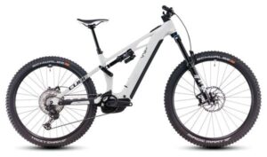 Le Cube Stereo Hybrid One55 C:68X TM 750 est un VTT électrique enduro carbone hautes performances, équipé Shimano XT 12V et batterie 750 Wh, idéal pour les trails exigeants.