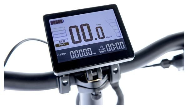 DISPLAY ET ASSISTANCE: Le display LCD,plus grand que sur notre gamme EMTB pour plus de confort vous offre 5 niveaux d’assistance – Eco / Tour / Sport / Turbo / Boost – ainsi qu’un máximum d’informations comme :