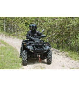NB : Ce modèle est garanti 2 ans pièces et 1 an en main d’œuvre. L’assurance est obligatoire pour ce type de véhicule et il peut être piloté sur route avec des casques homologués. En utilisation professionnelle, le quad équipé d’un treuil d’origine ne doit pas transporter de passager.