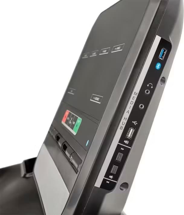 Le tapis inclut un support tablette intégré. Placez votre smartphone ou votre tablette pour suivre un film, une série ou un parcours virtuel. Cela rend chaque séance plus agréable et moins monotone.