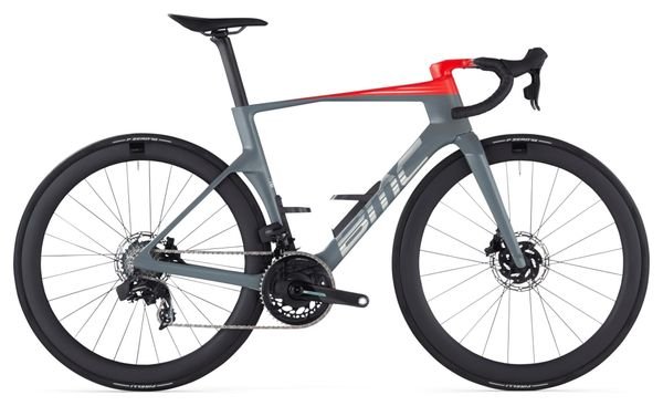 Vélo de Route BMC Teammachine R 01 Three Sram Force eTape AXS 12V 700mm Gris Iron / Rouge Neon 2024