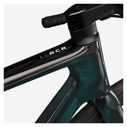 Vélo de route Van Rysel RCR Pro 2025, équipé du groupe électronique Shimano Ultegra Di2 12 vitesses, roues 700 mm et cadre vert Abyss élégant.