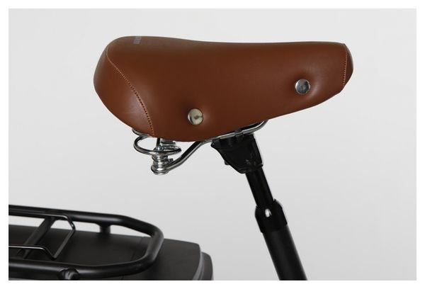 Le vélo de ville électrique mixte Bicyklet Claude allie style vintage et praticité moderne, avec sa transmission Shimano Tourney 7 vitesses, sa batterie 500 Wh intégrée et ses roues de 700 mm, pour des trajets urbains confortables et élégants.
