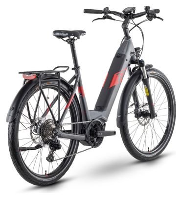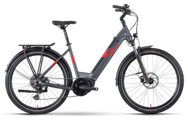 VTC Électrique Raymon TourRay E 6.0 Wave 2024 Gris, doté d’un moteur Tektro M350, d’une transmission 9 vitesses et d’une batterie 630 Wh pour un confort optimal au quotidien.
